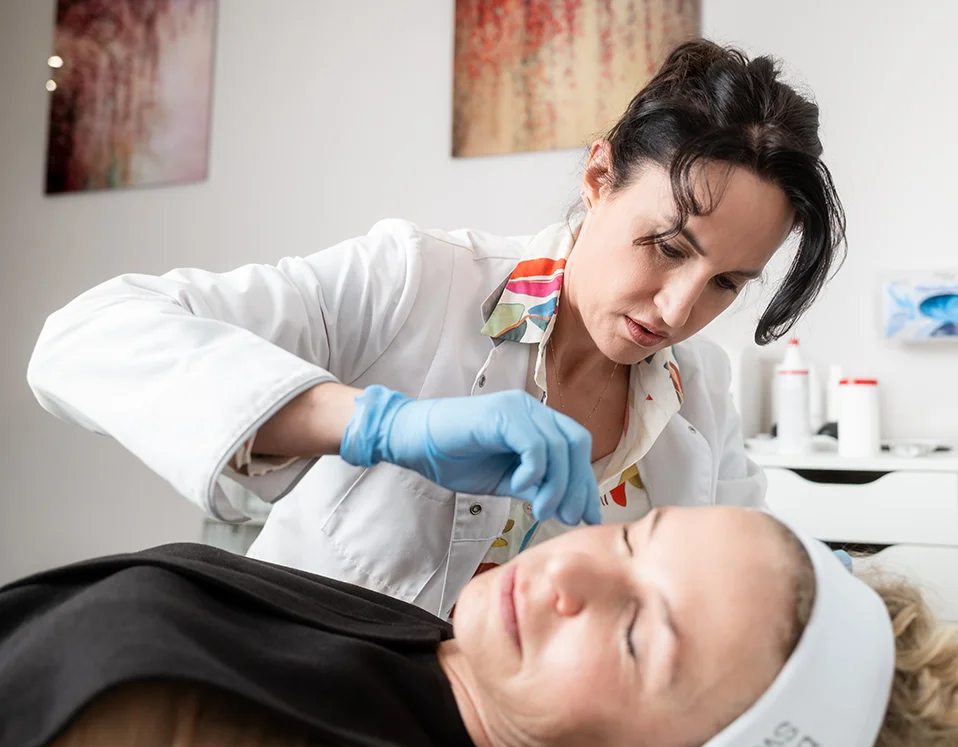 Spezialisierte Mesofäden für die empfindliche Augenpartie. Wir stärken dünne Haut und glätten Knitterfältchen – ohne künstliches Volumen und ohne „Puffy Eyes“.