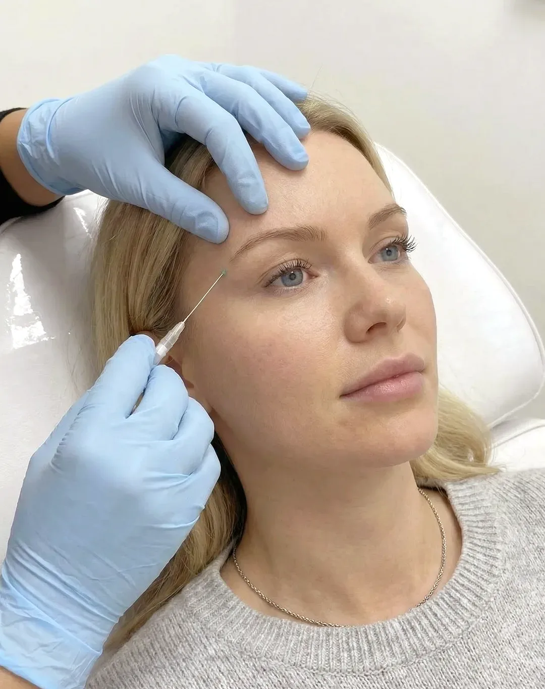 Durch die Verwendung von stumpfen Kanülen ist das Verletzungsrisiko minimal, da Gefäße und Nerven sanft zur Seite geschoben werden. Die Eintrittsstelle wird betäubt, sodass Sie den Einstich nicht spüren. Das Einlegen der Fäden wird meist nur als leichtes Druckgefühl wahrgenommen. Da wir in der Praxis ETN in München sehr erfahren mit dieser Zone sind, sind Sie in sicheren Händen.